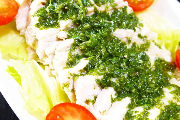 鶏むね肉サラダチキン バジルドレッシング レシピ 作り方 By ほっこり の クックパッド 簡単おいしいみんなのレシピが358万品